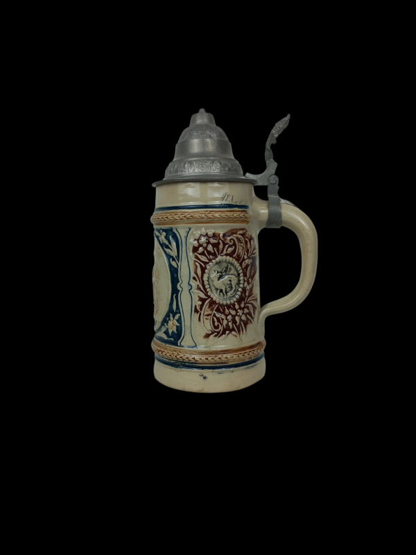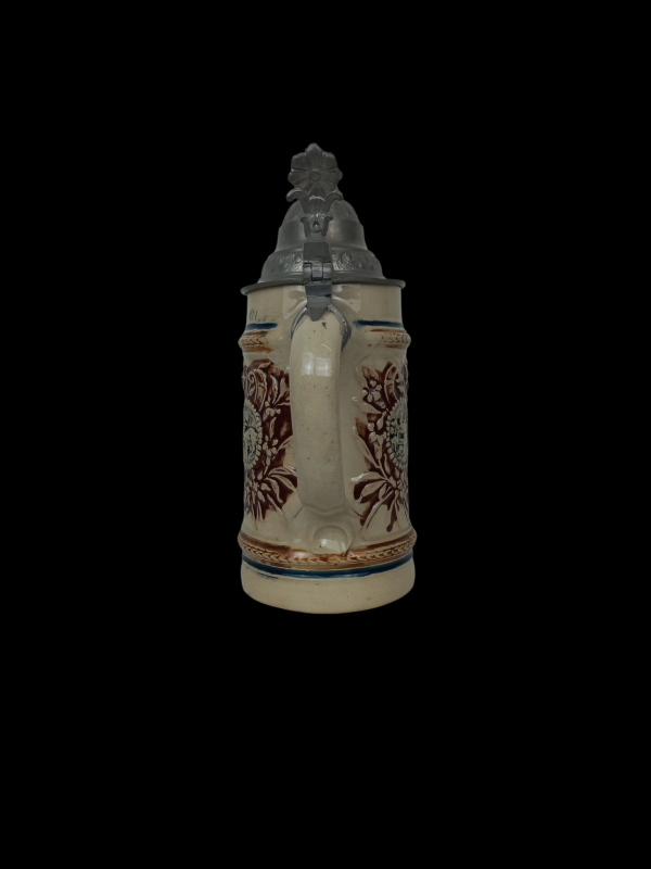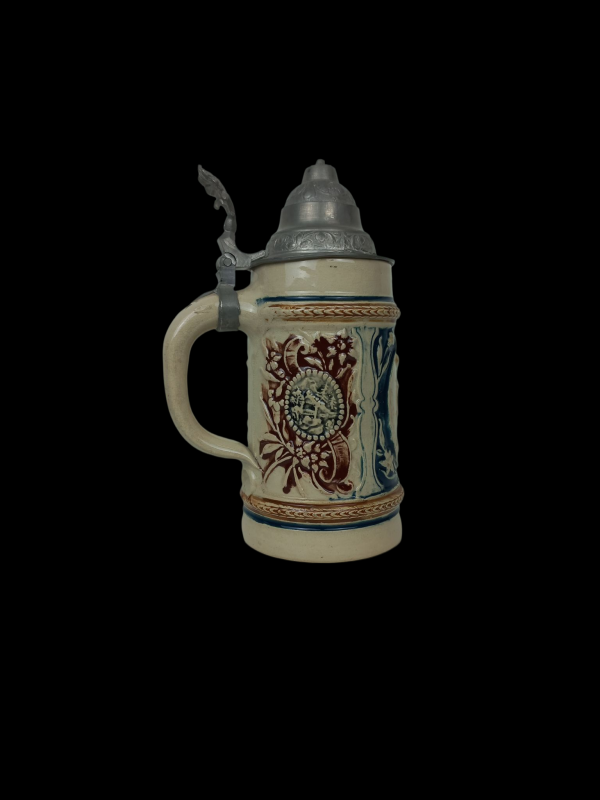 Bierkrug mit Zinndeckel, um 1950 (Keramik)