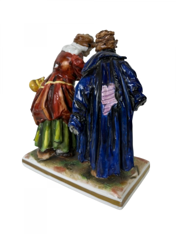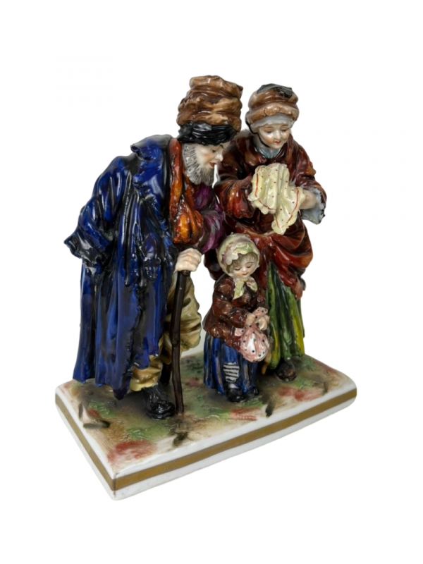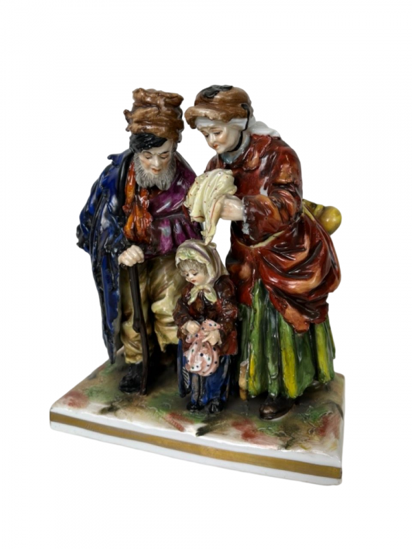 Exquisit erhaltene Porzellanfigur „Familiengruppe“ aus der renommierten Königlichen Porzellanmanufaktur in Neapel. Die Figur stammt aus der Zeit um 1900. Das Porzellan ist in einem makellosen Zustand, ohne jegliche Beschädigungen oder Abnutzungserscheinungen, wodurch die prächtigen Farben und feinen Details perfekt zur Geltung kommen.