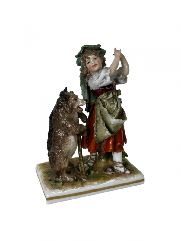 Porzellanfigur von Rotkäpchen, die von der königlichen Porzellanmanufaktur in Neapel um 1900 hergestellt wurde. Die Figur ist noch in unbeschädigtem Zustand.
